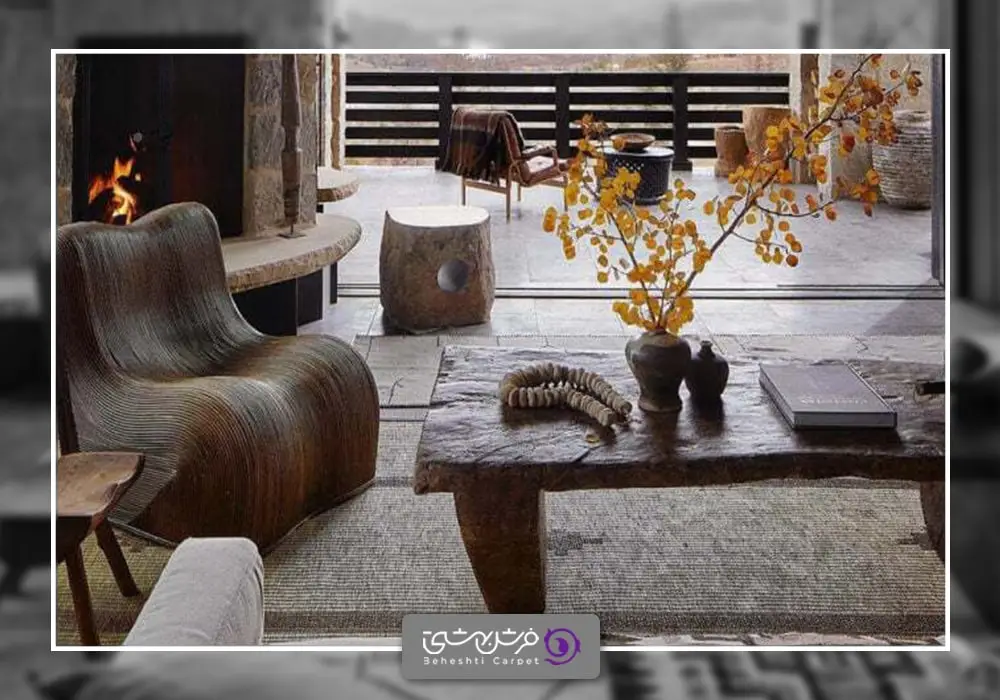 • استفاده از متریال های طبیعی مانند: چوب، سنگ، آهک، گچ، فلز،پارچه و…