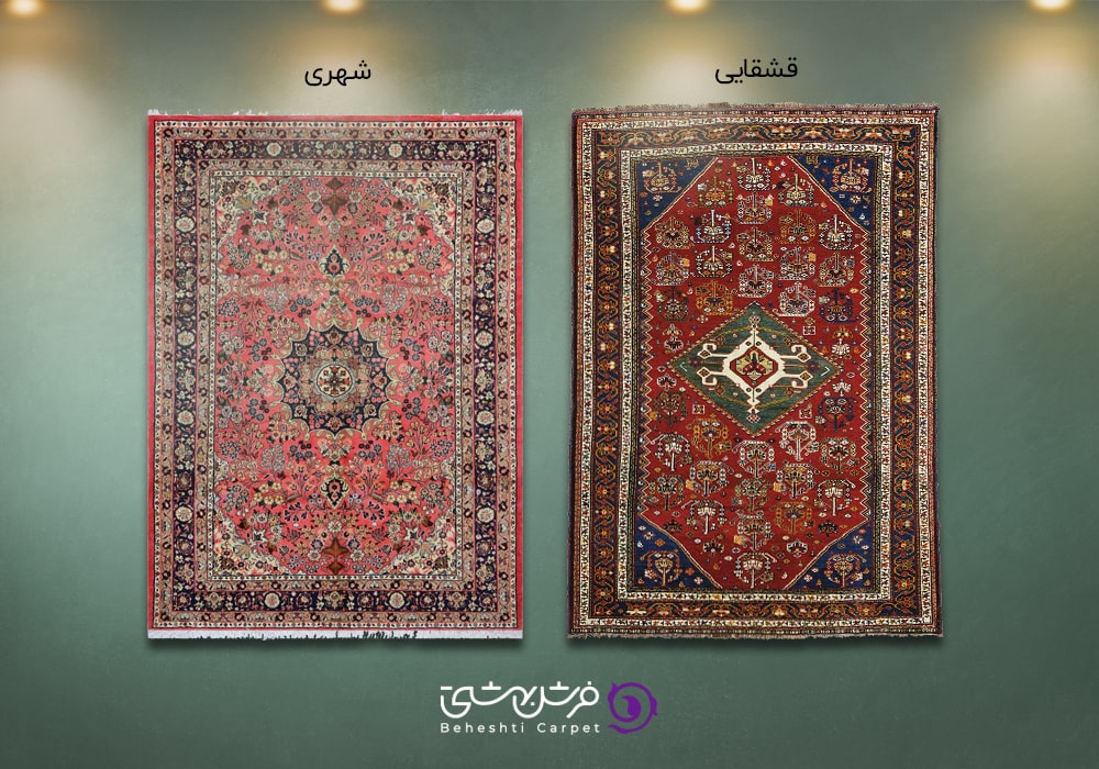 عمده ترین تفاوت فرش سبک شهری با فرش سبک عشایری و روستایی در طرح و نقش است. فرش شهری بر خلاف فرش عشایری و روستایی کپی برداری شده و بر اساس نقشه از پیش تعیین شده شکل گرفته. در مقابل فرش عشایری و روستایی غالبا ذهنی باف و برخاسته از تخیل و ذهن بافنده است.
